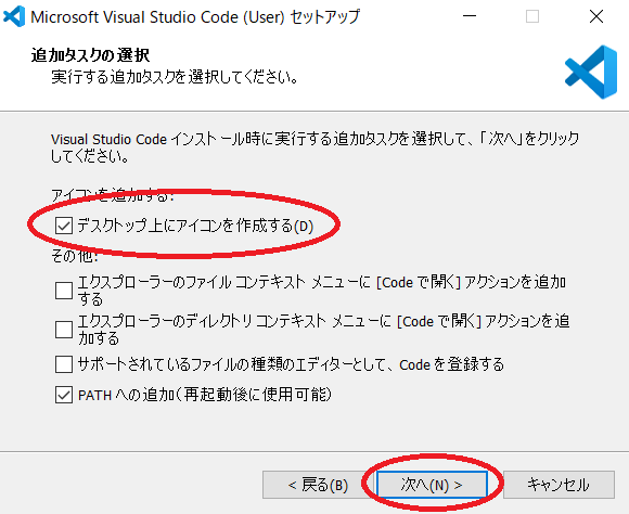 Vsiual Studio Code (無料のエディタ)を Windows へインストールする場合は、 以下のようにしてください。