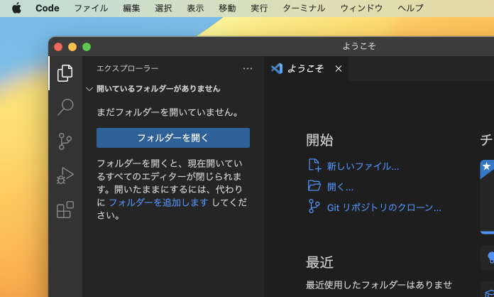 Launchpad から「Visual Studio Code」をクリックして起動します。